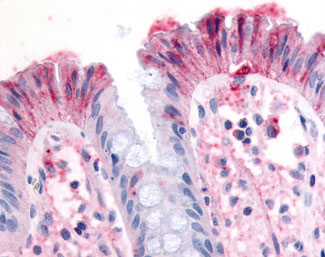 Anti-MST1R / RON antibody APR02057G IHC of human colon, surface epithelium. |