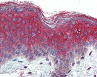 Anti-ITGA3 / CD49c antibody APR02077G IHC of human skin. |