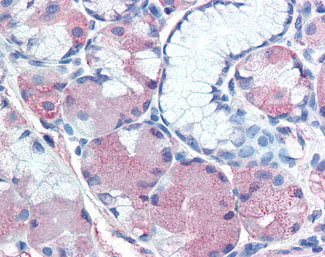 Anti-MUC13 antibody APR02081G IHC of human stomach. |