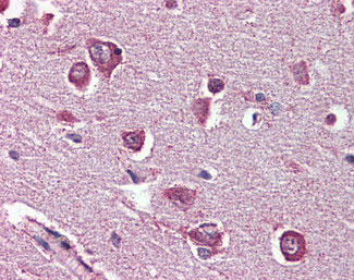 Anti-DPP10 antibody APR02087G IHC of human brain, cortex. |