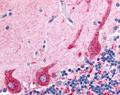 Anti-PRKCZ / PKC-Zeta antibody APR02091G IHC of human brain, cerebellum. |