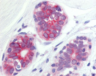 Anti-WNT6 antibody APR02123G IHC of human breast, epithelium cells. |