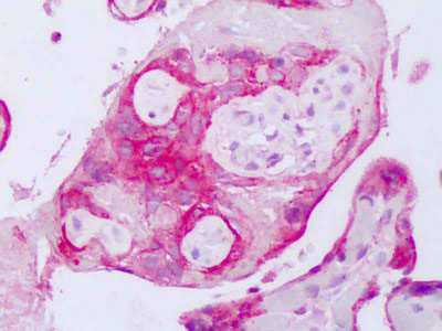 Anti-EGFR antibody IHC of human placenta. |