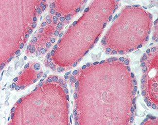Anti-ESYT1 / FAM62A antibody APR02141G IHC of human thyroid.