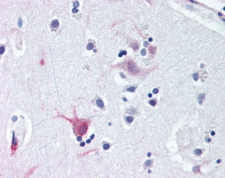 Anti-WNT8B antibody APR02144G IHC of human brain, cortex. |