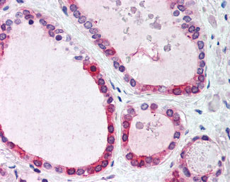 Anti-WNT4 antibody APR02148G IHC of human thyroid. |