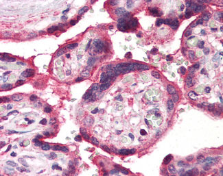 Anti-ERAP1 / ARTS1 antibody APR02153G IHC of human placenta. |