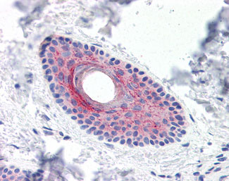 Anti-LYPD3 antibody APR02163G IHC of human skin, hair follicle. |