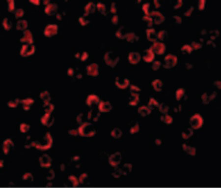 Immunofluorescence of TRAF6 in K562 cells with TRAF6 antibody at 20 ug/ml.