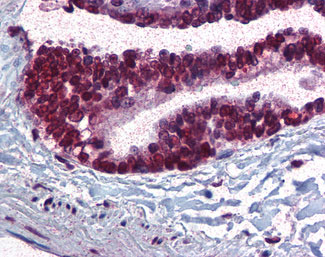 Anti-CDC16 / Apc6 antibody IHC of human lung, respiratory epithelium. |