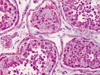 Anti-HSP90AA1 / Hsp90 antibody IHC of human testis. |