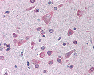 Anti-IRAK1 / IRAK antibody IHC of human brain, cortex. |