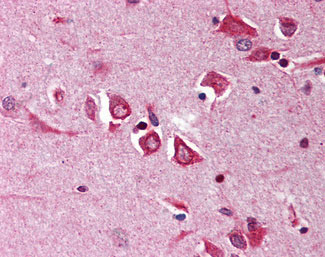 Anti-NGFRAP1 / NADE antibody IHC of human brain, cortex. |