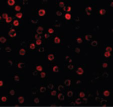 Immunofluorescence of DAD1 in HepG2 cells with DAD1 antibody at 10 ug/ml.