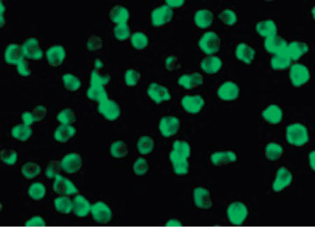 Immunofluorescence of ZIPK in Jurkat cells with ZIPK antibody at 10 ug/ml.