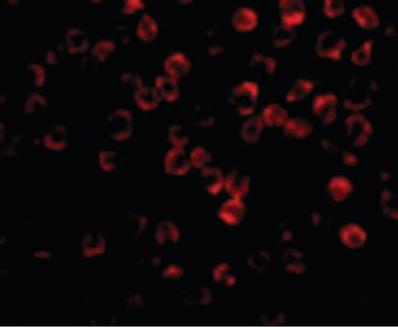 Immunofluorescence of TAB1 in 3T3 cells with TAB1 antibody at 2 ug/ml.