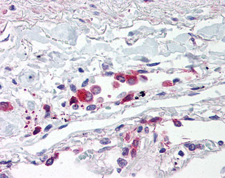 Anti-TLR5 antibody IHC of human lung, alveolar macrophages. |