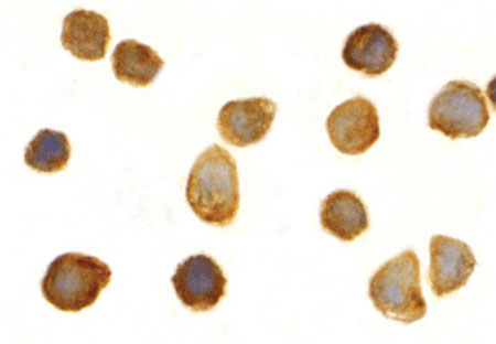 Immunocytochemistry of TOLLIP in THP-1 cells with TOLLIP antibody at 2 ug/ml.