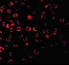 Immunofluorescence of TRAF3 in 3T3 cells with TRAF3 antibody at 2 ug/ml.