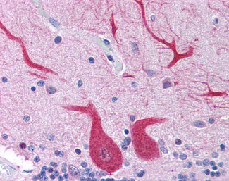 Anti-TLR10 antibody IHC of human brain, cerebellum. |