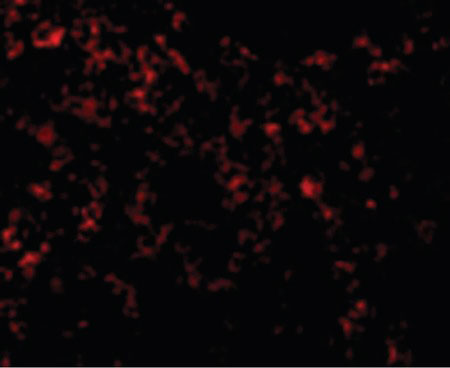 Immunofluorescence of TLR9 in Mouse Spleen cells with TLR9 antibody at 10 ug/ml.