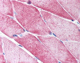 Anti-ACTA2 antibody IHC of human skeletal muscle.
