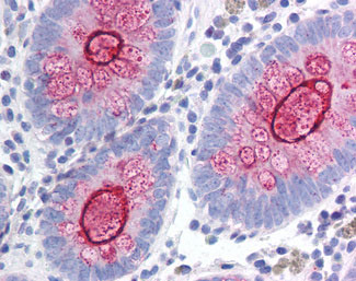 Anti-MUC1 antibody IHC of human colon.