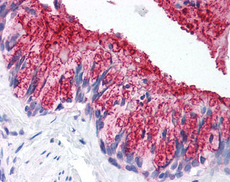 Anti-MUC1 antibody IHC of human lung, respiratory epithelium. |