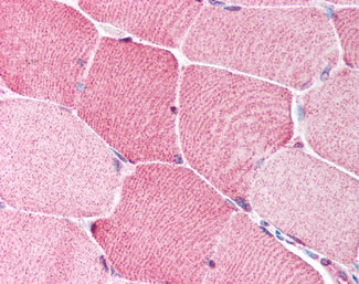 Anti-BRCC3 / BRCC36 antibody IHC of human skeletal muscle. |