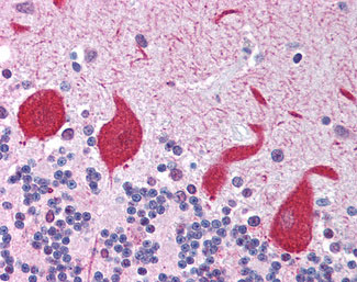 Anti-TLR10 antibody IHC of human brain, cerebellum. |