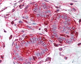 Anti-EZR / Ezrin antibody IHC of human breast. |