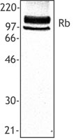 Recognizes the N-terminal region of human and mouse Rb.