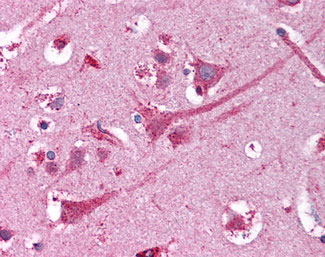 Anti-NEK9 antibody IHC of human brain, cortex. |