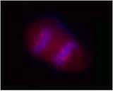 Overnight nocodazole treated Hela cells stained with purified mouse monoclonal antibody against...