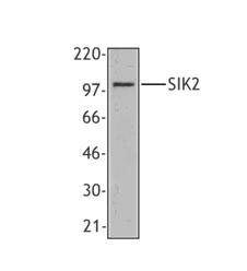 Western blot of extracts from HeLa cells, using anti-SIK2, clone S15G10. |