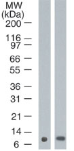 Western blot of Psoriasin/HID-5 in A) MCF10A?and B) MCF7 cell lysate using antibody at 1 ug/ml.