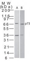 A portion of amino acids 75-125 of human p73 protein was used as the immunogen.