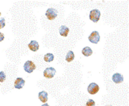 Immunocytochemistry of Bub1 in A20 cells with Bub1 antibody at 10 ug/ml.