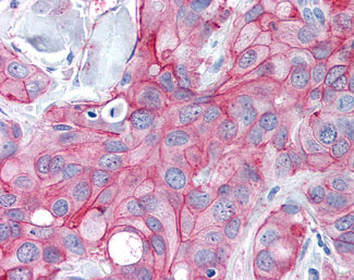 Anti-ERBB2 / HER2 antibody IHC of human breast, carcinoma. |