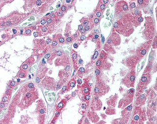 Anti-COL18A1 / Endostatin antibody IHC of human kidney. |