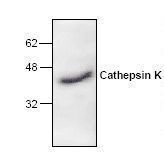 The antibody detects proform (43 kD) and the mature form (29 kD) of cathepsin K.