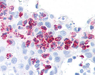 Anti-MMP-9 antibody IHC of human tonsil, neutrophils. |