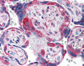 Anti-PDGFRA antibody IHC of human placenta. |