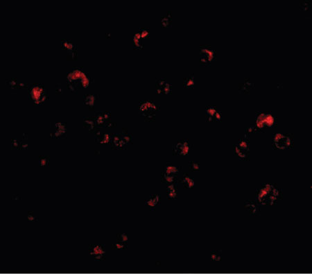 Immunofluorescence of TRIM25 in HeLa cells with TRIM25 antibody at 20 ug/ml.
