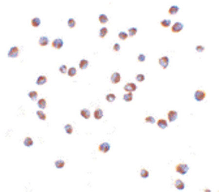 Immunocytochemistry of NOD2 in Jurkat cells with NOD2 antibody at 5 ug/ml.