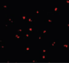 Immunofluorescence of NOD2 in Jurkat cells with NOD2 antibody at 20 ug/ml.