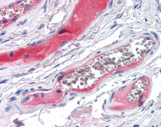 Anti-KLKB1 antibody IHC of human small intestine, vessels. |