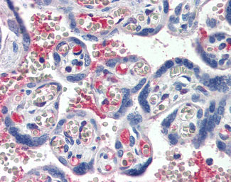 Anti-C1S / Complement C1s antibody IHC staining of human placenta. |