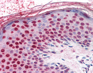 Anti-RANGAP1 antibody IHC of human skin. |