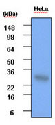 Cell lysates of HeLa (each 30 ug) were resolved by SDS-PAGE, transferred to PVDF membrane and... |
